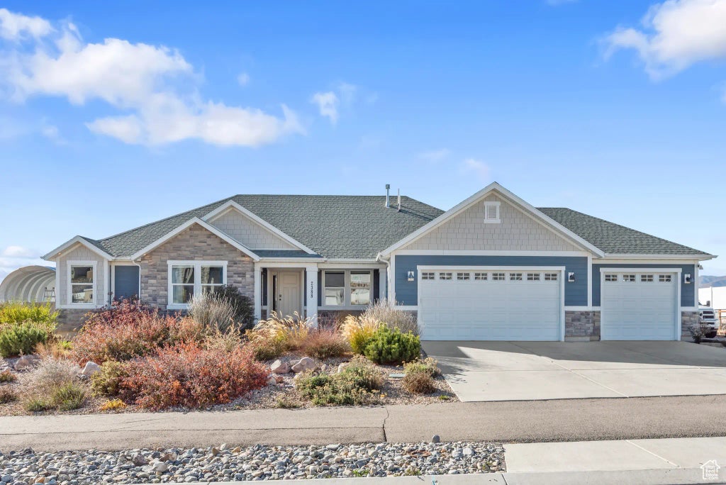 This spacious and inviting rambler offers 6 bedrooms, 3.5 bathrooms, 2 flex rooms, and sits on a generous animal-friendly 0.5-acre lot-perfect for growing families. Step inside to find vaulted ceilings, two-tone paint, and a tiled entry that create a warm and welcoming atmosphere. The kitchen features quartz countertops and elegant cabinets with crown molding, offering both charm and functionality. A 95% high-efficiency furnace ensures year-round comfort and energy savings. Families will love the additional indoor flex spaces. The upstairs flex space with French doors can be used as a music or study room, a sitting area, or converted to an additional bedroom. The nearly 500sf downstairs flex room is ideal for a home workshop, game/play room, or even a future studio apartment with existing water and power access. The large backyard provides plenty of space for kids to play, room to garden. As a zoned horse property, the new owners can also take advantage of the animal friendly neighborhood by bringing their horses, small livestock and chickens. The three car garage and sizable gravel driveway offers plenty of room for recreation vehicles. Located just a short drive from shopping, dining, and other amenities, this home offers the perfect balance of peaceful living with convenient access to everything your family needs.Seller is open to offering a credit at closing to help you create the backyard of your dreams, buy down your interest rate, or assist with moving expenses your choice! Buyer/Broker to verify all information.