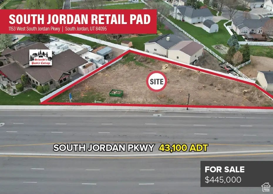 0.35 acres 46,000 cars/day on South Jordan Parkway Zoning: C-C Location: high visibility location off South Jordan Parkway
