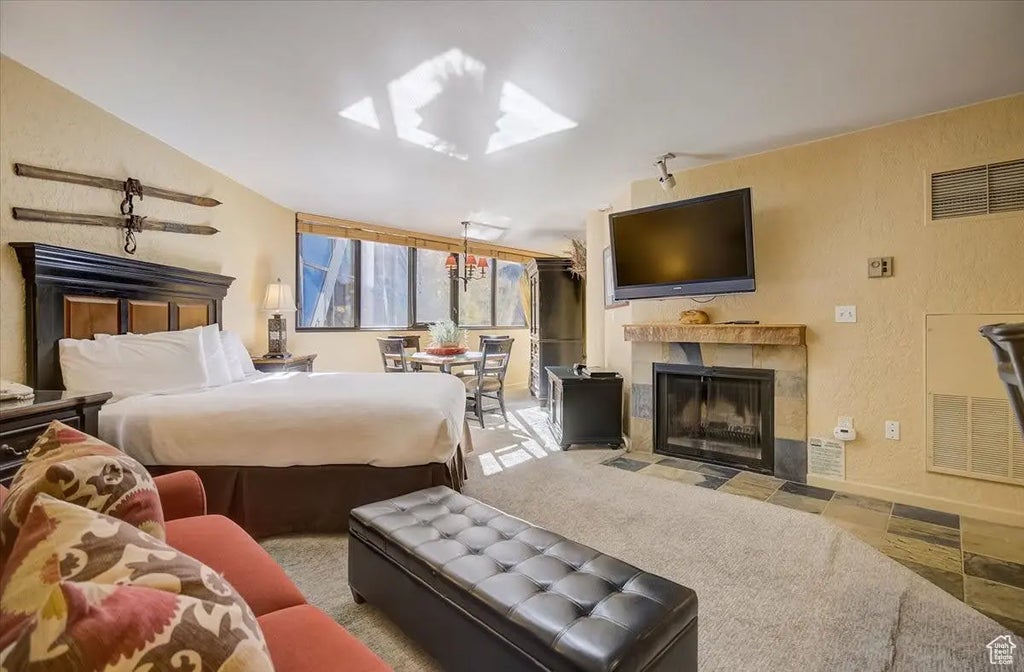 This exquisite 608 sq ft studio in Silver King offers an unparalleled opportunity to experience the best of mountain living. Thoughtfully furnished by a professional designer, this charming retreat is ideally situated just a quick walk to the First-Time chair lift at Park City Mountain Resort providing direct access to world-class skiing and outdoor adventures year-round. Inside, the studio boasts an inviting and efficient layout with a full kitchen, high-definition TV over the gas fireplace, and an in-unit washer and dryer for ultimate convenience. The home is complemented with an underground parking garage and an array of premium amenities designed for relaxation, including a $2 million renovation of the beautiful indoor/outdoor heated swimming pool, sauna, hot tub, a fully equipped gym, and ski locker room. With all utilities covered by the HOA, this residence ensures ease of living, leaving you to focus on enjoying the stunning surroundings. Also, enjoy the added benefit of being on the free Park City bus line, providing quick access to Park City's vibrant historic district, fine dining, boutique shopping, and cultural events. This mountain getaway combines the perfect blend of luxury, convenience, and an unbeatable location to make the most of everything Park City has to offer.