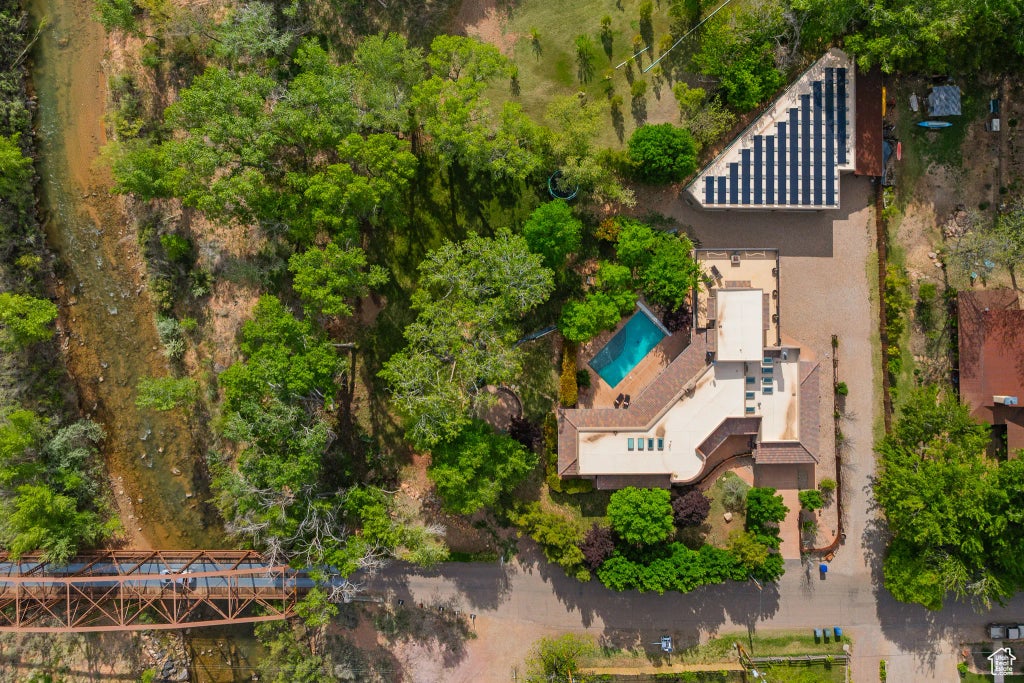 Riverfront Luxury in Rockville A Private Oasis on 1.41 Acres! Experience the ultimate blend of serenity and sophistication in this exceptional riverfront estate, perfectly situated along the Virgin River in Rockville, UT-just minutes from Zion National Park. This custom-designed home is a rare retreat, offering expansive indoor and outdoor living with stunning views and premium amenities. Step inside to discover a spacious, sunlit interior featuring 4 en-suite bedrooms, an additional office, and 5.5 baths. The gourmet kitchen is outfitted with state-of-the-art appliances and fine cabinetry, while the home theater, exercise room, and in-ground saltwater pool provide endless entertainment and relaxation. Designed for seamless indoor-outdoor living, the multiple patios and decks offer breathtaking views, while the private sandy beach along the Virgin River creates an unparalleled natural escape. Additional highlights include: 2 attached double garages + a 2,800 SF workshop with 220v hookups and 3 bay doors, providing space for 2-3 additional vehicles 18,500-gallon underground water tank, plumbed to the pressurized irrigation system. Full solar system (installed May 2021, $70K investment). 2 irrigation water shares included. A perfect haven for those seeking privacy, luxury, and direct riverfront access, this estate offers tranquility and modern convenience in one of Southern Utah's most scenic locations.