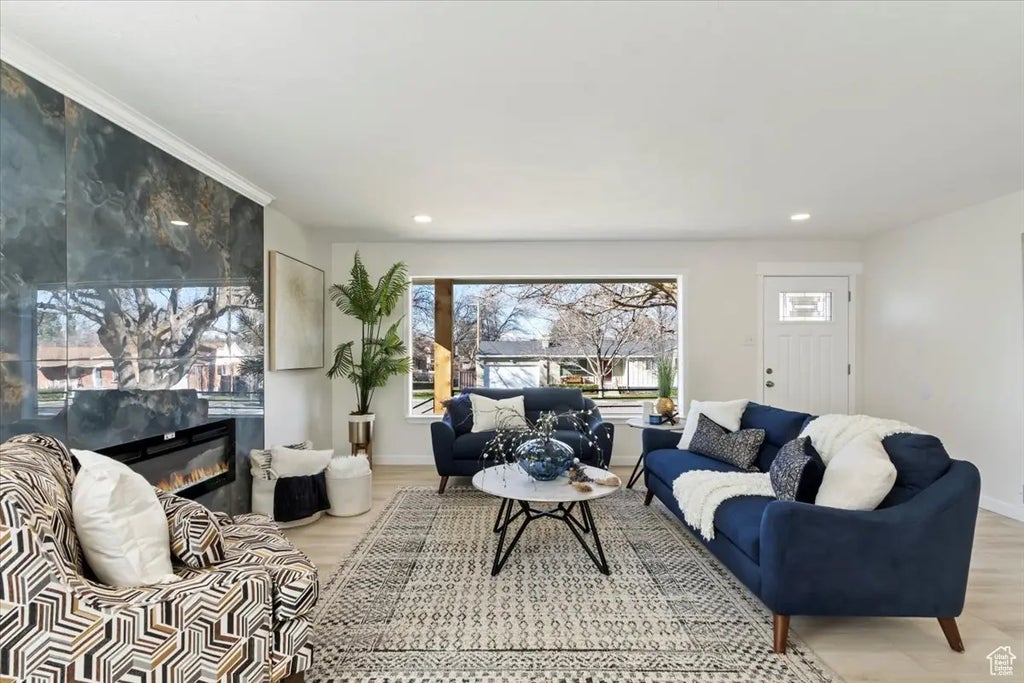 EXCELLENT PRICE! This is a $1,000,000 home priced way below other properties like it! What a great deal! Elegant HOLLADAY remodel in coveted neighborhood ready for your family to make memories! Nice large windows for tonz of natural lighting. All new flooring, paint, some new wiring, 2 electric fireplaces, custom kitchen w/quartz countertops, gas range w/vent fan, built in drawer microwave in the massive island w/charging station. Main floor family room/game room w/dry bar & soda/wine fridge. Stunning master bedroom w/walk in closet, double sink vanity w/LED heated mirrors & a master shower to die for w/3 heads, hand held wand, bench & beautiful sliding door! All bathrooms have beautiful tile work & custom designs! Basement has two bedrooms with new egress windows, family room with electric fireplace & two bathrooms. All new darling laundry room as well. Furnace & water heater are newer. The roof is a lifetime roof (metal/aluminum). There is also a ramp from exterior to family room. Oversized two car, extra depth and width with two person doors. Very private backyard! Owners/Agents! Shows spectacular! Pond non operable. Location is awesome and so close to the action in Salt Lake City and Park City areas. Just minutes away from the ski resorts and canyons for outdoor activities!