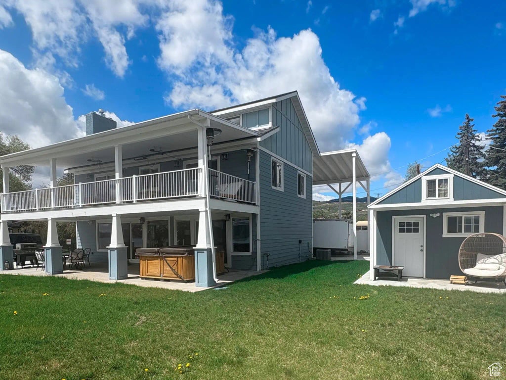 GREAT PRICE FOR BEACHFRONT!! Escape to your own slice of paradise at this classy Bear Lake beachfront home located in Shore Lodge Estates. Enjoy the luxury of direct access to a sprawling, sandy beach, perfect for endless days of sun-soaked relaxation and water adventures. This property offers the unique advantage of no HOA fees, allowing you to maximize your investment and personalize your lakeside experience. Short term rentals are allowed. Convenience meets tranquility, as you're just a short distance from downtown Garden City for shops and dining. Embrace the outdoors with proximity to two city parks, offering playgrounds for the little ones, pickleball courts for friendly competition, and a serene fishing pond for peaceful afternoons. A paved bike and walking path invites you to explore the scenic beauty of the area at your own pace. This spacious, three-level home is designed for comfortable living and memorable gatherings, featuring: 5 bedrooms--allowing for ample space for family and guests; 3.5 bathrooms--ensuring convenience for everyone. A deck (with heaters) and patio (with hot tub) provide ideal spaces for outdoor entertaining and enjoying breathtaking lake views. A kids bunk room--creates a fun and functional space for younger guests.This Bear Lake beachfront retreat offers a harmonious blend of relaxation, recreation, and convenience, making it the perfect destination for your dream lakeside getaway.