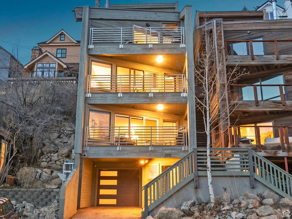 An Old Town Haven with Modern Luxuries and NO HOA. Perched two blocks from Old Town's Main Street's dining and shopping. This fully renovated residence offers breathtaking panoramic views of Old Town, Park City Mountain Resort, and Deer Valley. Remodeled in 2016, this home boasts a design that encourages group and family gatherings, PLUS OPTIMAL RENTABILITY. The second level focuses on gathering of friends and family, combining an updated kitchen, great room, and dining space. Add a full bath, laundry, and a deck for comfort and fun. The third level provides two bedrooms and a large full bath. The pride of the property (4th and 5th level) is the TWO-LEVEL PRIMARY SUITE with 1.5 baths, a wet bar, a mini fridge, a microwave, a skylight above the massive bed, and a private deck. The design would produce two separate living areas by locking out the 4th and 5th levels (they can have separate entrances). The expertly curated mountain modern aesthetic includes custom tile shower surrounds, quartz countertops, vanities, travertine and carpet floors, and stainless steel appliances. The three decks provide the best views in Park City, with the twinkling lights of Main Street and mountain lifts. The private stairs, shared with the adjacent property, provide direct access from the home to Marsac Ave and across to Swede Alley, giving occupants unparalleled walkability, second only to being directly on Main Street. Offered fully furnished and turn-key, this residence is an exceptional opportunity, whether as a generational gathering place or a sound investment in the heart of Park City. Oh yes, it has an attached one-car oversized garage with additional driveway parking . NO HOA.