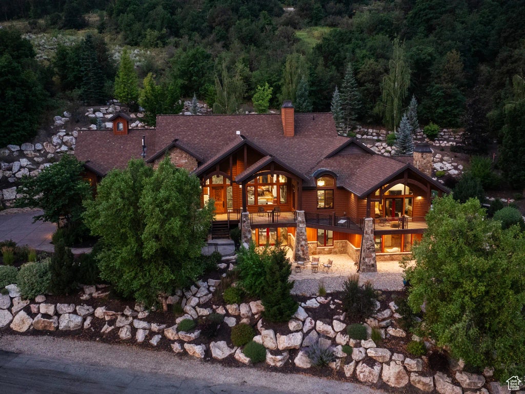 Set in an exclusive gated community with commanding views of Powder Mountain and Pineview Reservoir, this extraordinary estate offers a rare blend of privacy, sophistication, and mountain elegance. Thoughtfully designed with timeless finishes and premium amenities, this residence is a true sanctuary. Grand vaulted ceilings with timber trusses, hickory wood flooring, custom iron stair railings, and a dramatic floor-to-ceiling natural stone fireplace set the tone for the home's elevated mountain style. The gourmet kitchen is a standout, featuring Subzero and Wolf appliances, granite countertops, stained wood cabinetry, and a striking custom-made chandelier above the dining area. The private hot tub room offers a spa-like retreat with skylights, large windows, and a fireplace. The walk-out lower level is an entertainer's dream, featuring a full second kitchen, a spacious great room with another natural stone fireplace, a temperature-controlled wine cellar, and a private home theater. Every space is thoughtfully designed to maximize comfort, functionality, and connection to the surrounding natural beauty. Designed for effortless 4 season indoor-outdoor living, the home features three covered patios, a fire bowl overlooking lake views, an indoor/outdoor fireplace, and a custom stone water fountain-all surrounded by professionally designed landscaping and year-round beauty. Located just minutes from world-class skiing, water sports, hiking, and more, this is luxury mountain living at its finest. Buyer to verify all, Taxes are at a non-homestead rate.