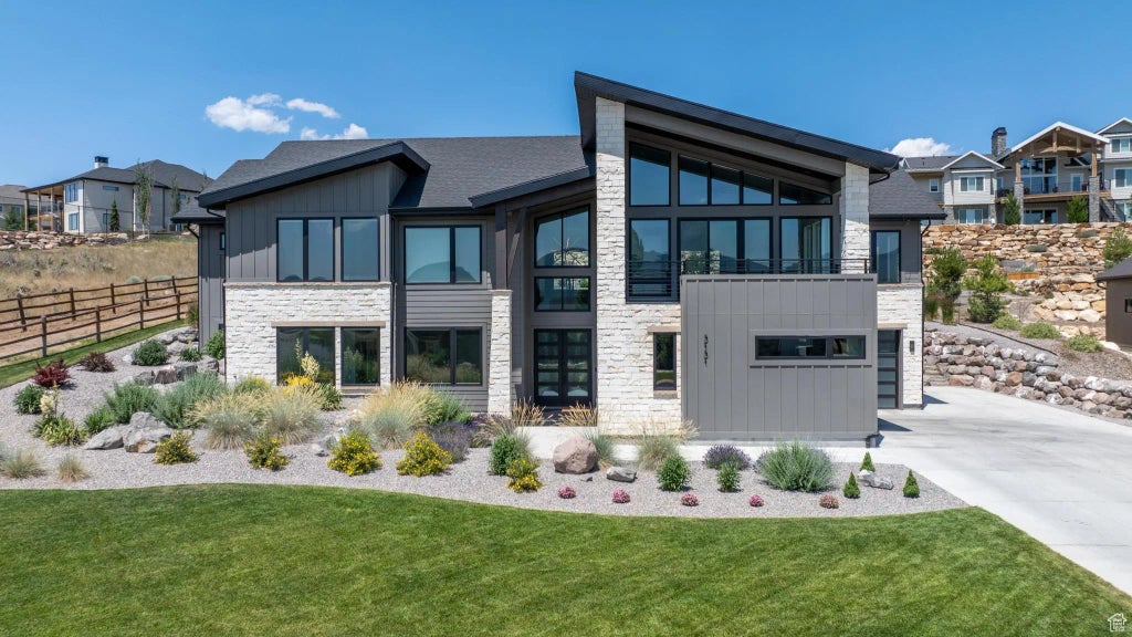 Stunning modern home located in the Crossings at Lake Creek - one of Heber City's most sought after neighborhoods. This custom modern home boasts a blend of contemporary design with ultra clean lines, luxury, and comfort. Enjoy the amazing mountain views from the covered deck or step inside to discover an open floor plan with high ceilings, expansive windows, abundant natural light, and great views. This home offers multiple well-sized bedrooms, each designed with comfort and style in mind. The kitchen features a large center island and quartz countertops that are perfect for hosting family gatherings and entertaining friends and opens to a large inviting living room with a cozy modern fireplace. The meticulously landscaped yard continues the dedication to contemporary design outside with carefully selected plants and trees and a firepit. Enjoy the convenience of smart home features, including Nest climate control, Ring door bell, myQ garage doors, and Hydrawise irrigation system - all easily managed from your smartphone. The outdoor sport court is designed for both pickleball and basketball and a highly rated Springfree Trampoline is included. Owner is licensee (Owner/Broker). Square footage per Builder's Plans. Acreage per county records. Buyer/Buyer's Agent to verify all information.