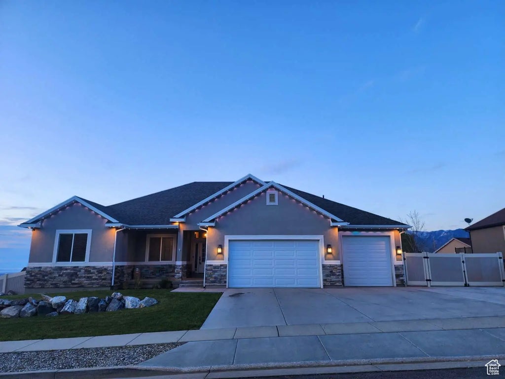 This spacious and beautifully designed 5-bedroom, 4-bathroom home offers breathtaking 360-degree views of the surrounding mountains and the Great Salt Lake. The heart of the home is an incredible chef's kitchen, featuring top-of-the-line Bosch appliances, a double oven, and a 5-burner gas cooktop, Granite counter tops. perfect for entertaining and everyday gourmet cooking. Enjoy the comfort and convenience of a fully finished walk-out basement, ideal for guests, entertaining, or additional living space. The property also features two RV pads, providing ample room for parking your toys or hosting visitors. Out back, you'll find a large backyard ready for outdoor living and recreation. The oversized 4-car garage is heated with a pellet stove, offering plenty of space for vehicles, storage, or a workshop. Don't miss the chance to own this one-of-a-kind home that combines luxury, function, and unforgettable views.