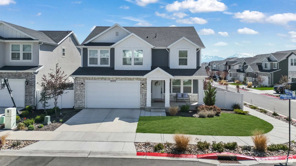 This upgraded 3-bedroom, 2.5-bath home with a loft and office is perfectly positioned on a corner lot with great curb appeal and a fully landscaped yard. Enjoy natural light from oversized sliding windows, a backyard with garden, swingset, and built-in gas BBQ line. Inside features include upgraded flooring and fixtures, gas stove, roller and automatic shades, Cat6 wiring, and included fridge and security cameras. Upstairs offers spacious bedrooms (thanks to a 2' garage bump-out), a versatile loft, and a ceiling fan-ready owner's suite. The unfinished basement adds room to grow. The garage includes a 240V outlet for EV charging, plus water softener and radon mitigation system. Located in the Jordan School District, this 2022-built home is ready for its next chapter! Square footage figures are provided as a courtesy estimate only and were obtained from tax records. Buyer is advised to obtain an independent measurement.