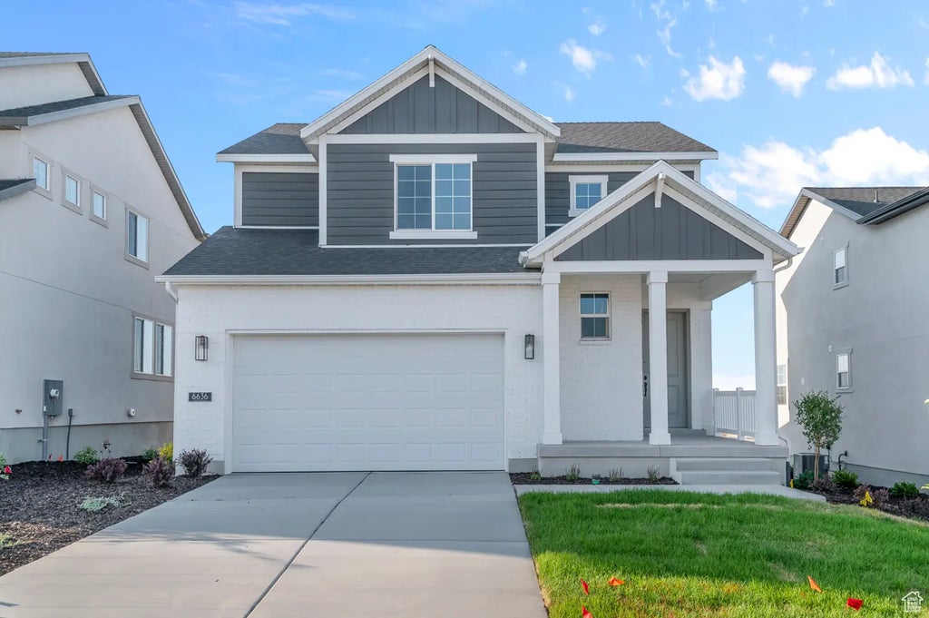 This beautiful brand new Palmdale is a timeless cottage home in a great master planned community! This thoughtfully designed home features sleek gray laminate cabinets, quartz countertops, and stainless steel gas appliances in a modern chef's kitchen. Flooring includes a blend of laminate hardwood, tile, and carpet for both comfort and durability. Enjoy the added touches of can lighting, a tankless water heater, and metal stair railing. The owner's bathroom boasts cultured marble shower surrounds and bold black matte hardware, all complemented by two-tone paint and Craftsman base and casing. Comes fully landscaped for a true turn key experience.