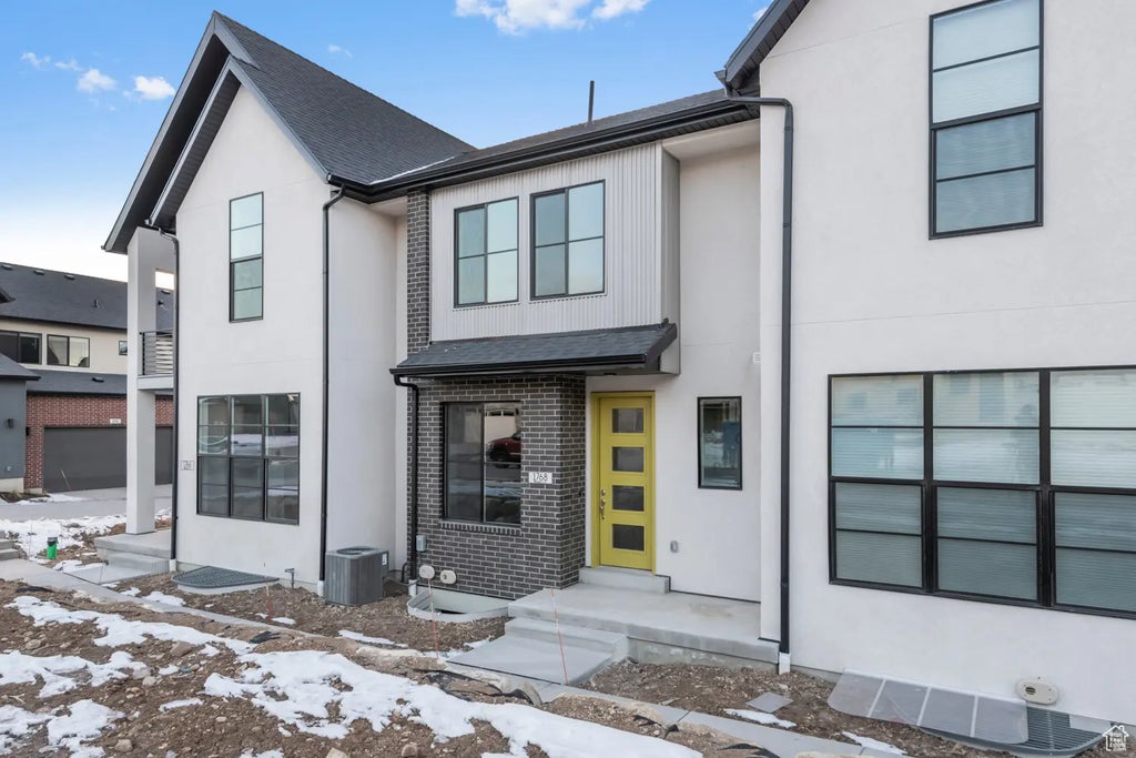 Come see this stylish Sundborn Townhome that combines contemporary design with high-quality finishes in a great Heber community! Featured you will find white laminate cabinets paired with elegant quartz countertops and stainless steel gas appliances in the kitchen, offering a clean and modern look. The flooring throughout includes a blend of laminate hardwood, vinyl tile, and carpet, providing a balance of style and comfort. The home is accented with a metal railing at the stairway adding a sleek, modern touch. The owner's bathroom showcases cultured marble shower surrounds with black matte hardware giving it a refined and luxurious feel. Comes fully landscaped that is maintained by the HOA for an easy care, hassle free living experience!