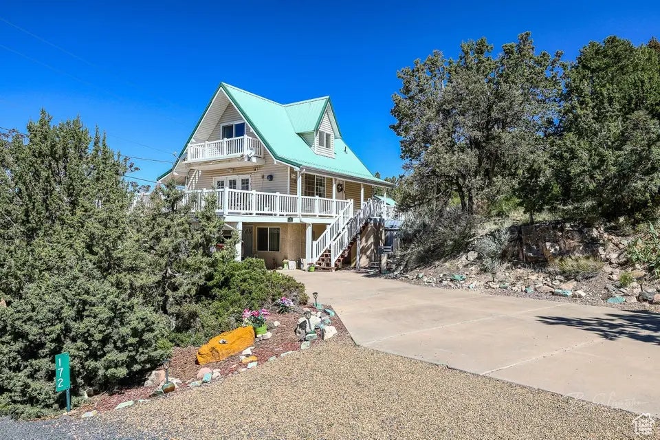 Accepting back up offers. Breathtaking Valley Views & Versatile Living Space. This charming home offers some of the most stunning views in the valley, best enjoyed from the expansive wraparound deck with a retractable awning-perfect for relaxing or entertaining. The finished basement provides excellent potential for rental income or multi-generational living, offering flexibility for any lifestyle. A power chair lift ensures easy accessibility, and all upper-level furniture is included for a move-in-ready experience. Thoughtfully remodeled in 2001, the home features a cozy electric fireplace/stove on the main level, two heat/air units, and an additional gas wall heater for year-round comfort. Enjoy newer appliances, attractive wood flooring, and updated blinds throughout. Additional highlights include: New double septic tank system Two matching storage sheds with cement floors and electricity-one fully equipped as a workshop, and two built in storage rooms under home. Easy year-round access with a circular driveway and covered carport. Spacious 0.36-acre lot, beautifully wooded with Juniper and Pinion trees. Located just 25 miles from St. George in the peaceful community of Central, this home sits at a refreshing 5,500 ft elevation-offering the perfect blend of natural beauty, privacy, and convenience.