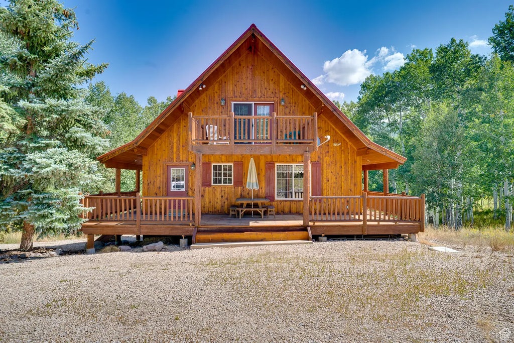 Pristine cabin in Upper Timber Lakes. This well cared for cabin is perfect for full time living or vacation retreat. Mature aspens and pines, easy approach with expansive parking, plenty of space and a 2 car tandem garage! Spend your evenings on the wrap around deck watching the wild life roam or enjoy the wood burning stove. Large great room & dining room, 4 bedrooms (two with private decks), 3 bathrooms and a large laundry/utility room with a new tankless water heater. Plenty of room for the entire family. Currently sleeps 18, as set up. Furnishings negotiable. Timber Lakes is a private community and offers year round recreation with hiking/biking/atv trails, multiple private lakes, and direct access to some of Utah's best snowmobiling country! Gated and secured access. Schools and shopping are just 12.5 miles and Wasatch County buses pick up at the entrance. With Salt Lake City just 56 miles away this location offers mountain living with easy access to major metropolitan amenities. Square footage figures are provided as a courtesy estimate only. Buyer is advised to obtain an independent measurement.