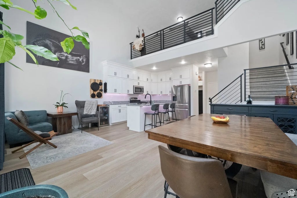 Discover this stunning 4-bedroom, 2.5-bath townhome built in 2022 in the heart of Bluffdale, Utah. The entry features soaring 18+ foot ceilings, leading to a spacious, open-concept layout with huge windows for tons of natural light. Enjoy double-stack kitchen cabinets with under-cabinet lighting, quartz countertops, and stainless steel appliances. Luxe automation includes $14,000 Google-powered drapes in the kitchen, living room, and master, plus a solar-powered shade in the kitchen. The large master suite boasts an upgraded ensuite with a new granite-tile shower and dual shower-heads. Comfort is paramount with two A/C & HVAC systems creating three comfort zones. Perfect blend of style, convenience, and smart home features,this house has it all! Come check it out!