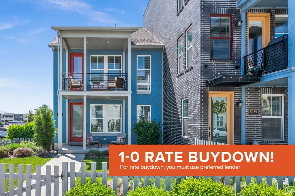 Seller offering 1/0 rate buy down with Jackson Ogden at First Colony Lender. Enjoy 1% off your interest rate for the first year! Contact agent for details. Come experience this like-new townhome nestled in the heart of South Station, one of Daybreak's most desirable communities. This end-unit townhome is walking distance to restaurants, recreation, and the new Bees baseball stadium. Key features include three well-sized bedrooms, including a master suite with vaulted ceilings, walk-in closet, expansive windows with stunning views of the Wasatch Mountains, and the cutest walk-out balcony. Enjoy an open-concept kitchen and dining area with ample storage space throughout the townhome and spacious two-car garage. To top it off, this stunning townhome offers a covered balcony, as well as covered patio, and is fully fenced with a yard that's maintained by the HOA.