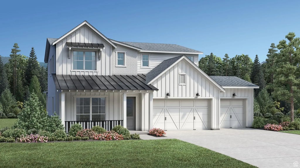 This home is projected to complete September, 2025! Representative photos of Cutler Home Design. Stylish contemporary family living. The Cutler's inviting covered entry and foyer open immediately onto the bright flex space, revealing views of the spacious great room, casual dining area, and desirable luxury outdoor living space beyond. The well-designed kitchen is equipped with a large center island with breakfast bar, plenty of counter and cabinet space, and sizable walk-in pantry. On the second floor, the marvelous primary bedroom suite is complete with a gigantic walk-in closet and deluxe primary bath with dual-sink vanity, large soaking tub, luxe glass-enclosed shower, linen storage, and private water closet. Central to a generous loft, secondary bedrooms feature ample closets and shared full hall bath with separate dual-sink vanity area. Additional highlights include a desirable first floor guest bedroom suite with roomy closet and private full bath, convenient powder room, centrally located second floor laundry, and additional storage throughout. A versatile fully finished basement offers endless possibilities for additional bedrooms and an entertaining space. The community is situated just minutes away from shopping, dining, and entertainment. Schedule an appointment today to learn more about this stunning home!