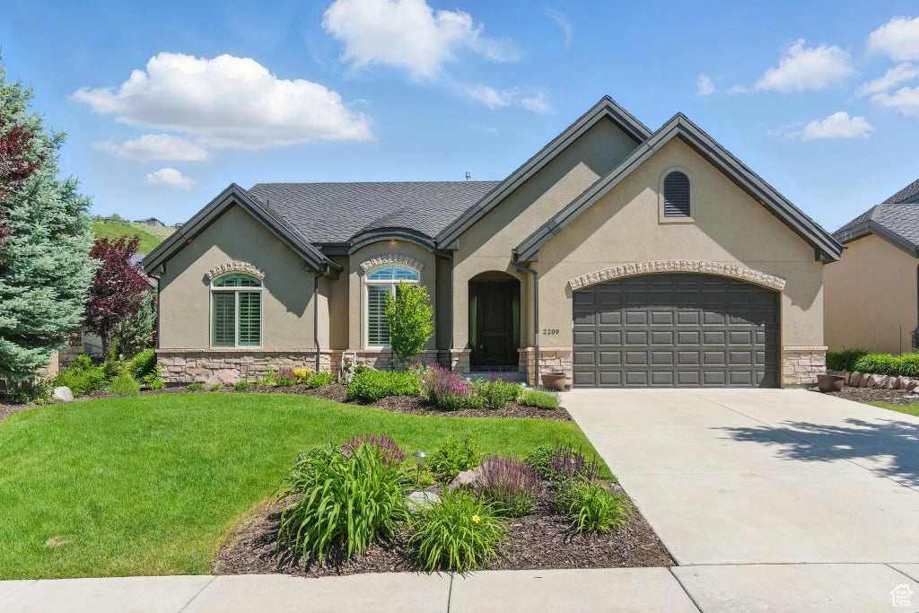 Welcome to this beautifully upgraded and meticulously maintained home in the highly sought-after Suncrest Community, known for its serene mountain setting and incredible community amenities. This thoughtfully designed 5-bedroom, 2.5-bath home seamlessly blends comfort, accessibility, and quality craftsmanship. The main level features a spacious family room with soaring 11-foot ceilings, a real stone gas fireplace with extra outlets above the mantel for seasonal dcor, and floor outlets for convenient furniture placement. The chef's kitchen includes under-cabinet lighting, a custom double sink, a large pantry in the adjacent butler's room, and flows beautifully into the open-concept layout. Oversized 8-ft doors, custom wood shutters, and two-tone paint with wide baseboards elevate the elegance throughout. The primary suite is fully accessible, with widened doorways, a zero-clearance shower, his and hers drawers in the vanity, and its own patio access. The secondary bedroom also features a walk-in closet, and the fully finished basement adds three additional bedrooms-one with a walk-in closet-all with closet lighting for added convenience. The basement remodel includes new carpet throughout, a custom stone fireplace with gas log, crown molding, and oversized baseboards to match the upstairs. A spacious family room, full bathroom with double sinks and a custom mirror, and a dedicated storage room complete the lower level. Additional upgrades include a high-efficiency furnace with multiple programmable thermostats, one to control the primary bedroom and one for the rest of the home. Other features are a full-home humidifier, 50-year roof, real stone wainscoting on the exterior, custom front wood door, and beautifully landscaped front and backyards filled with flowers, mature trees, and bushes. Enjoy the expansive back patio with decorative lighting, built-in blinds in patio doors, and easy access from both the kitchen and primary bedroom. The garage has been freshly painted, the garage floor and patio power washed, and all windows cleaned inside and out-making this home truly move-in ready. Residents of Suncrest enjoy access to a clubhouse, fitness center, pool, hot tub, parks, trails, and breathtaking views-all just minutes from world-class outdoor recreation and local conveniences. Square footage figures are provided as a courtesy estimate only and were obtained from county records. Buyer is advised to obtain an independent measurement.