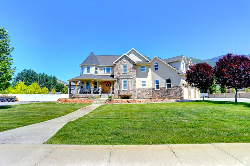 Welcome to this exceptional custom-built home situated on a full acre in the highly sought-after community of Mapleton. Designed with both luxury and functionality in mind, this residence offers an unparalleled living experience, highlighted by breathtaking views of the majestic mountains. Wake up to serene sunrises and unwind to vibrant sunsets, all from the comfort of your thoughtfully designed home. One of the standout features is the state-of-the-art indoor full basketball court, installed in 2025 at a cost of approximately $500,000. This impressive space also includes batting cage nets, baseball L-screens, and turf-perfect for sports enthusiasts of all kinds. Step outside into a private oasis where the backyard features a heated pool complete with an electric cover, lighting, diving board, and slide. Adjacent to the main pool, you'll find a separate lounge pool and a luxurious hot tub. The elevated deck overlooks the entire backyard and includes a cozy fireplace-ideal for entertaining or relaxing in style. Inside, the beautiful, spacious kitchen is outfitted with upgraded appliances and is the heart of the home. The open floor plan and soaring ceilings enhance both the functionality and aesthetic appeal of the interior. Every detail has been considered, including new furnaces, a new water heater, blackout blinds, and elegant Picasso shutters. The home was recently professionally painted, and features brand-new carpet and hardwood floors throughout. The floor plan was carefully designed to take full advantage of the home's setting, with large windows strategically placed to frame the incredible mountain views and changing seasons. Whether you're watching the sunrise or the snowfall, this home keeps you connected to nature's beauty year-round. As an added bonus, the fully finished basement includes a spacious mother-in-law apartment with a separate entrance from the garage. This well-appointed suite includes three bedrooms, two full bathrooms, a large kitchen, a generous family room, and patio access from a walkout to the fenced backyard-all with mountain views of its own. Conveniently located across from Ira Allan Park, you'll enjoy easy access to soccer fields, playgrounds, and the beloved annual July 24th Mapleton Days celebration-complete with front-row seats to one of the best fireworks shows in the state. This extraordinary property truly has it all. Don't miss your chance to experience the perfect combination of luxury, comfort, and community. This home is a must-see!