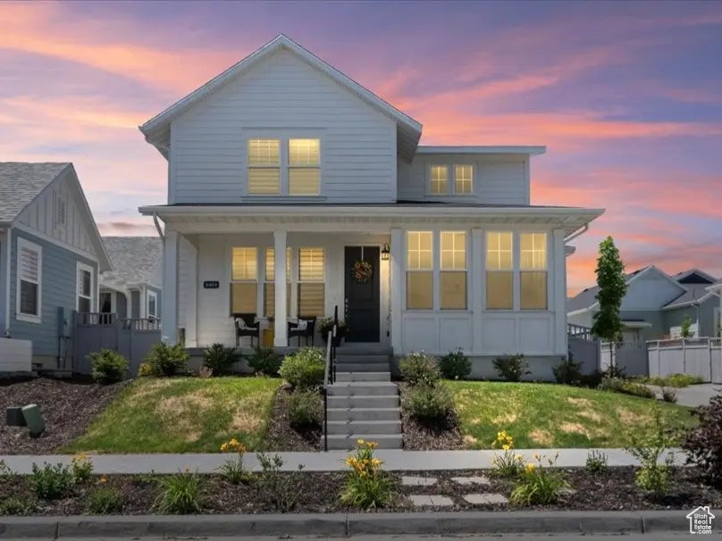 Multiple Offers received and under bank review. No showings or offers at this time. Stunning, charming, bright & sunny Daybreak home, 3 years old with all the upgrades: quartz counters, full-sized custom cabinets, classy light fixtures, with all bedrooms on 2nd story, including laundry. Main floor's great room is full of east facing morning sunlight, flooding into living room and kitchen. Patio doors off of informal dining space lead to cozy fully-fenced backyard. Basement finished by builder includes: 2 beds, 1 full bath, large gathering space/movies/games etc. This home is one block from the Watercourse, and a few blocks from Daybreak's SWIG location, playground, water/beach, boathouse for kayaks & paddleboards, ducks and a stream. This area is growing and will have retail shops, concerts and more in coming years. Location is 2 miles from the new SLC baseball BEE's stadium and from Soda Row, more retails, dining, summer farmer's market, concerts and more.