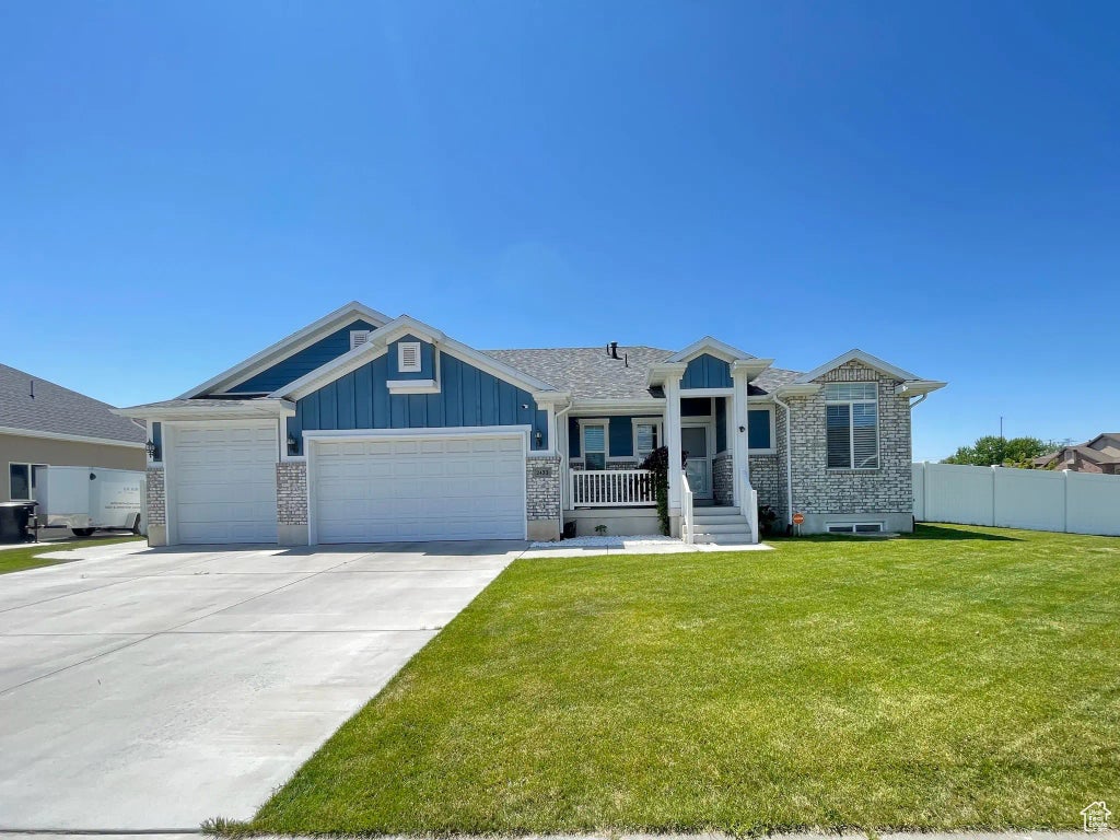 PRICE CORRECTION!! This well cared for 5-bedroom, 3-bathroom home sits on a roomy 0.29-acre corner lot and has just under 3,000 square feet of living space. It's the perfect blend of cozy and modern, with tons of natural light, vaulted ceilings, and an open, welcoming feel throughout. The main level features spacious bedrooms and bright living areas, while the finished basement adds even more space to enjoy including a unique oversized bedroom with double closets, a home theater setup with a projector, and a wet bar that's great for entertaining. Outside, the large backyard includes a fire pit and plenty of space to relax or host get-togethers. Whether you're looking to upgrade or just need more room, this home has a great layout and thoughtful features throughout. Located just 2 minutes from Clinton City Recreation, 4 minutes from Meadow Park, and only 6 minutes to I-15, it's in a great spot with easy access to everything. Square footage and acres are based off of county records and provided as a courtesy, buyer is responsible to verify all information.