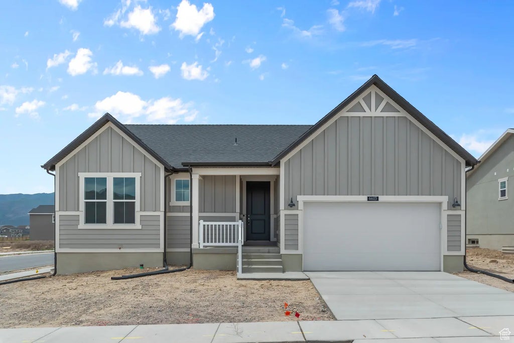 Come see this beautiful brand new 1700 Farmhouse rambler in a great Eagle Mountain master planned community! This home combines modern comforts with rustic charm featuring a stylish kitchen with gray laminate cabinets, quartz countertops, and stainless steel gas appliances. Box bay windows in the kitchen nook and owner's bedroom bring in ample natural light and space and energy-efficient options promise savings. Cultured marble shower surrounds provide an elegant touch in the owner's bathroom along with chrome hardware, 2-tone paint and laminate hardwood flooring that completes the modern farmhouse vibe. Come check it out today!
