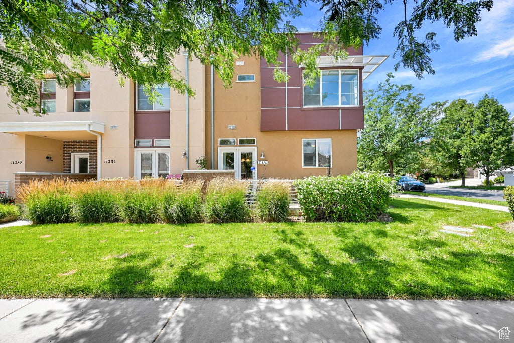 Original owners jumped on this property before it was built to get the best location in the community! Built as a "Green" home this EPA-certified unit has the Energy Star Rating in addition to 8 seller owned solar panels that significantly reduce energy costs! (see agent remarks for the list of features that sets this property apart from others). You are surrounded by newer built single family homes, giving you that true neighborhood feel! Main floor has 9' ceilings with streaming natural sunlight. SELLER UPGRADES INCLUDE: : all new kitchen in 2019 w/ granite counter tops, kitchen island, tile backsplash, new dishwasher & disposal, ERV air filtration system, water softener, custom shades, Murphy bed, and built-ins for additional storage. The attached 2 car garage has good height clearance w/ an auto door opener and shelving for storage. A second story den can easily be transformed into a 4th bedroom or office. One block from the District shops, restaurants, grocery, & theater. Largest square footage unit in this phase. Buyer to verify all information.