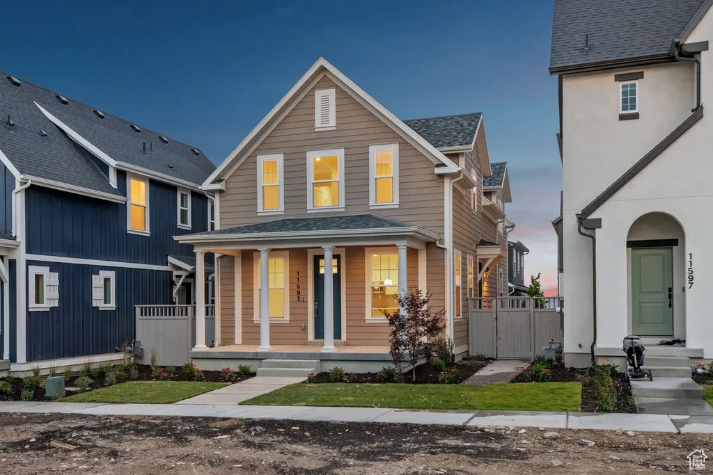 This is your chance to own a brand new single family home in the amazing Daybreak community!! **3.99% RATE BUYDOWN: Qualifies for 3.99% for the first year and 4.99% PERMANENT buydown!! (call agent for details)** Welcome to the Fairview - where comfort, style, and community come together. Ideally located just around the corner from The Covehouse and Watercourse, this home puts you steps away from the heart of the neighborhood's vibrant central gathering space and a future elementary school. Enjoy enhanced privacy and an open feel thanks to the community green space directly in front of the home, creating a scenic, park-like setting right outside your door. A spacious front porch invites you to relax and take in the peaceful mornings or stunning evening skies, while a side patio offers a more secluded outdoor area- perfect for letting out the dog and grilling in the summer. Inside, the dining room features a custom built-in banquette, adding charm and functionality. The vaulted ceiling in the primary suite adds a touch of grandeur, and a gas range makes the kitchen a delight for home chefs. You'll also find premium touches throughout: upgraded flooring and finishes, laundry room cabinetry, a 220 outlet in the garage for an electric vehicle or tools, and convenient roll-out trash drawers in the kitchen. Plus, with a 2-year builder warranty and a 10-year structural warranty, you'll enjoy lasting quality and peace of mind for years to come! Schedule a showing today and don't miss the opportunity to own this beautiful home in Daybreak! Buyer and buyer's agent to verify all information.