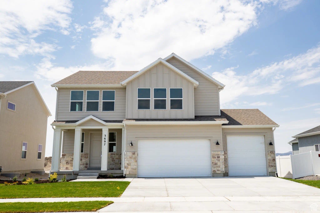 AMAZING $10,000 INCENTIVE TOWARDS CLOSING COSTS, RATE BUYDOWN, OR PRICE REDUCTION REGARDLESS OF LENDER! Must-see Harmony Community in Eagle Mountain! Move-in ready! This beautiful home built by Flagship Homes features a 3 car garage, 4 bedrooms, 2.5 bathrooms, quartz slab countertops, painted cabinets, laminate flooring on the main level, a large loft on the 2nd floor, landscaped front yard, and backyard (can be landscaped for an additional charge). The primary bedroom has a vaulted ceiling, large walk-in closet, and dual sinks with a separate tub and a large shower with two heads. With an unfinished basement, this home provides space for storage and room to grow. (If preferred, basement can be finished for an additional charge.) Call for more information or stop by our model home at 3859 N. Thomas St., Eagle Mountain for a tour. Model home hours: Monday-Saturday 11 AM - 6 PM. Buyers to verify all information. Square footage is from house plans.