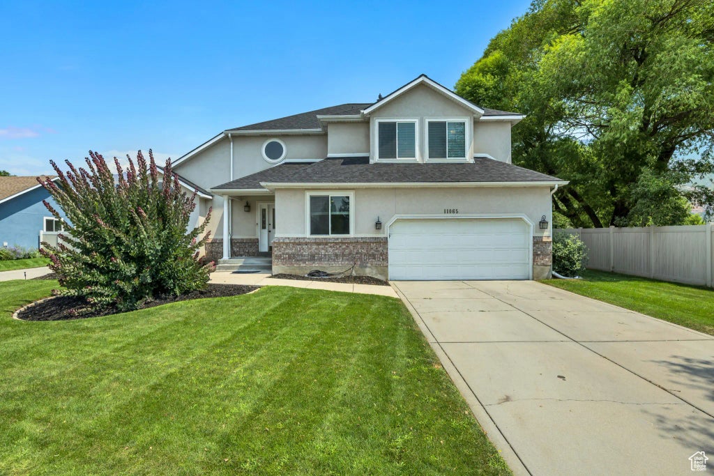Nestled in a desirable Sandy neighborhood, this exceptional home offers the perfect blend of elegance and convenience with swift access to the highway and shopping. Boasting significant recent upgrades including a new HVAC system (2018), a new roof, new windows, and solar panels for lower energy bills, this home is as efficient as it is beautiful. A grand entry welcomes you with soaring vaulted ceilings and gleaming LVP floors, complemented by newer carpet throughout. This 4-bedroom, 3-bathroom home, situated on a large lot with a 3-car garage featuring overhead storage, is designed for modern living. The main floor features a dedicated office, formal sitting and dining rooms, and a spacious kitchen equipped with new appliances, a stylish backsplash, a convenient built-in desk, and a pantry. This culinary space flows seamlessly into a large family room, made cozy by a warm fireplace. A half bath completes the main level. Upstairs, the expansive master suite serves as a private retreat, offering a separate shower and tub, and a generous walk-in closet. You will also find a convenient laundry room with built-in cabinets and two additional bedrooms. The partially finished basement provides valuable extra space with a fourth bedroom, a second family room, and ample room for storage and future growth.