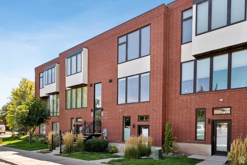 Enjoy urban living at its finest in this contemporary townhome at Markea Court. Three bedrooms and three bathrooms including a spacious primary suite on the top floor with walk-in closet, a spa-like en suite bath with dual vanity and a separate tub and shower. Open-concept kitchen, dining and living room boast tall ceilings, beautiful hardwood floors, lots of natural light and views from the large east facing windows. Kitchen features white cabinets, stainless steel appliances, granite counters and stainless steel island plus a bar area with a wine fridge, a walk-in pantry and a private deck for BBQing or outdoor dining. Top floor also includes an additional bedroom, bathroom and laundry. Ground floor bedroom with an adjacent bath has its own entrance and patio making it a great option for guests or a home office. Two-car garage with shelving and wall racks for bikes. Newer paint, carpet, doors, railings, Mecho shades and more inside plus new stucco and a newly replaced deck on the exterior. Ideally situated in the city in between downtown and the University of Utah and near shopping, restaurants, trax/public transit and everything else the city has to offer. Pet friendly community and HOA also allows rentals. Don't miss out, call for your appointment today! Buyer to verify all.