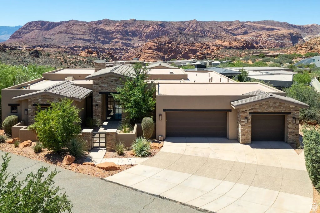 This beautifully designed custom built home offers the best of indoor comfort and outdoor living with stunning views, all set in the prestigious Ledges gated community. Step through a private courtyard and dramatic 16-foot foyer with steel beams and brick accents to find an open, modern layout with 12-foot ceilings, 8-foot windows, and sleek engineered European white oak flooring. The gourmet kitchen features White Ice granite and quartz counters, Wolf double ovens, a Sub-Zero fridge, hidden walk-in pantry, and a custom wood waterfall bar. The spacious primary suite includes backyard access, a large walk-in closet, and a spa-style bath with soaking tub, Kohler steam shower, and under-cabinet lighting. A separate casita offers its own entrance, 10' ceilings, designer tile shower, and Carrara marble vanity. Additional features include half bath with backlit Onyx countertop, smart home wiring (Google & Vivint systems), central vacuum, large laundry room with office nook, modern fireplace, built-in entertainment center, and a finished 3-car garage with epoxy floors and extended bays. Stackable sliders lead to a private backyard oasis with a 30'x20' pool (with Shamu shelf), spa, putting green, Wolf grill, covered patio, outdoor shower, and even an exterior half bath and storage room. This home blends luxury, style, and functionality in a setting that feels like a year-round vacation. On the bench above Snow Canyon State Park and less than 15 minutes north of the city of Saint George. This property is also a short drive to some of America's most breathtaking destinations, including Zion National Park, Bryce National Park, and the north rim of the Grand Canyon. Other nearby state parks and national forests, include Sand Hollow Reservoir, Gunlock Reservoir, Quail Creek Reservoir, and Dixie National Forest that enhance the allure of the location. With over 300 days of sun, incredible year-round weather, and in the middle of a 7,200 yard par 72 golf course designed by Matt Dye, there is no doubt that The Ledges is one of Southern Utah's best kept secrets. One of the best places to live for those who love the outdoors, biking, hiking, fishing, ATVing, and all other high-desert adventures. All information herein is deemed reliable but is not guaranteed. The buyer is responsible to verify all listing information, including square feet/acreage, to the buyer's own satisfaction.