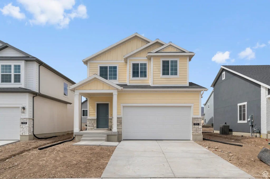 Come see this Sanders Cottage Home, where cozy charm meets modern functionality in a great community! This beautifully designed home features white laminate cabinets paired with sleek quartz countertops and stainless steel gas appliances, creating a bright and contemporary kitchen space. The home's flooring includes a blend of laminate hardwood, vinyl tile, and carpet, offering both durability and comfort. The owner's bathroom is highlighted by elegant cultured marble shower surrounds, accented with satin and brushed nickel hardware for a refined touch. Built with 9-foot basement foundation walls, craftsman base & casing and equipped with a 40-gallon water heater, this home includes thoughtful energy-efficient options for sustainable living. Comes with front yard water-wise landscaping providing the perfect combination of style, practicality, and comfort!