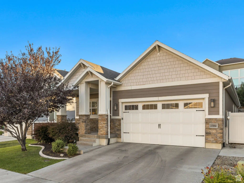 Welcome to this stunning, move-in ready rambler nestled in a quiet South Jordan neighborhood just minutes from Daybreak-without the HOA! Offering easy access to Bangerter Highway, restaurants, shopping, walking trails, and lakes, this home combines comfort, convenience, and timeless design. The open-concept floor plan features vaulted ceilings, a tastefully designed kitchen with beautiful countertops & stainless steel appliances, and a gas fireplace in the inviting family room. The master suite includes a charming bay window, elegant wainscoting, a stylish barn door, and an en-suite bathroom with a separate tub & rainfall shower, double vanity, and walk-in closet. Downstairs, the finished basement offers a large family room with oversized windows, a sizable bedroom, and a huge storage room with the potential to be converted into a fifth bedroom. Square footage figures are provided as a courtesy estimate only. Buyer is advised to obtain an independent measurement.