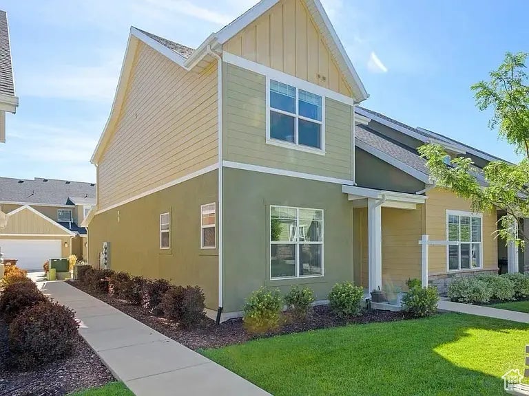 Beautifully maintained end-unit townhouse located in a secure gated community with convenient access to freeways and shopping. Features a two-car garage with opener, an open-concept floor plan, and 9' ceilings. The main floor boasts laminate wood flooring, while bathrooms and laundry are finished with tile. The modern kitchen offers white cabinetry, granite countertops, a spacious island, and a separate pantry. Brand new Refrigerator & Washer / Dryer included. The master suite includes a separate tub and shower, dual-sink vanity, linen cabinet, and a generous walk-in closet. Smart home features include a Google Nest thermostat and video doorbell. The HOA takes care of landscaping and snow removal. Square footage figures are provided as a courtesy estimate; buyers are encouraged to obtain an independent measurement.