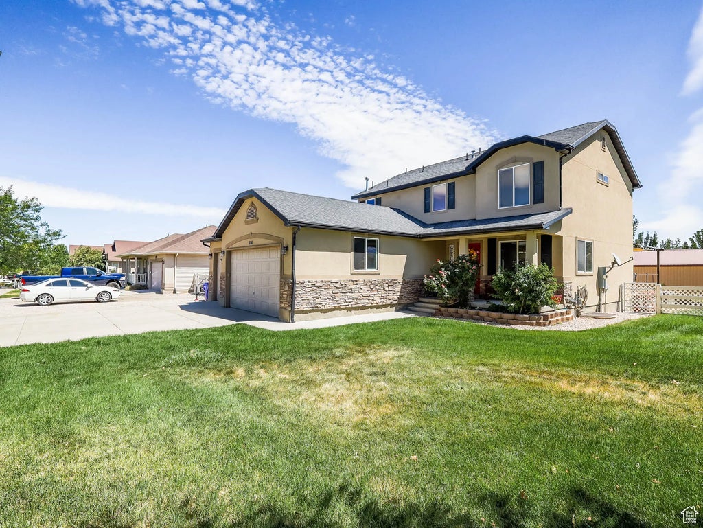 Welcome to this beautifully designed 2-story home perfectly situated on a spacious -acre corner lot with sweeping views of Deseret Peak. This 4-bedroom, 3-bathroom home offers a thoughtful layout that blends comfort and function, featuring a generous loft space, ideal for a home office, playroom, or media area. The heart of the home includes an open concept kitchen and living area, perfect for entertaining, and flows seamlessly onto a large deck overlooking the backyard. Enjoy year round relaxation in the hot tub, or host gatherings under the stars. For the hobbyist or outdoor enthusiast, the property includes RV parking and a massive 30x60' barn; providing ample room for all your shop, storage, or recreational needs. A rare 3-car garage adds even more flexibility for vehicles or gear. With its blend of indoor comfort, outdoor living, and unmatched mountain views, this home offers the space, freedom, and lifestyle you've been looking for.