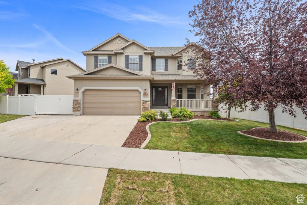 Beautiful 2-story home in a desirable West Jordan neighborhood! Featuring fresh paint, new carpet, and gorgeous hardwood floors, this home offers an open floor plan with neutral tones and a spacious family room complete with a cozy fireplace. Upstairs you'll find 4 bedrooms, 2 full bathrooms, and a versatile loft. The finished basement boasts a large second family room, perfect for gatherings. Enjoy a fully landscaped yard with an expansive Trex deck-ideal for entertaining. Conveniently located near shopping, parks, Mountain View Corridor, and Bangerter Highway.