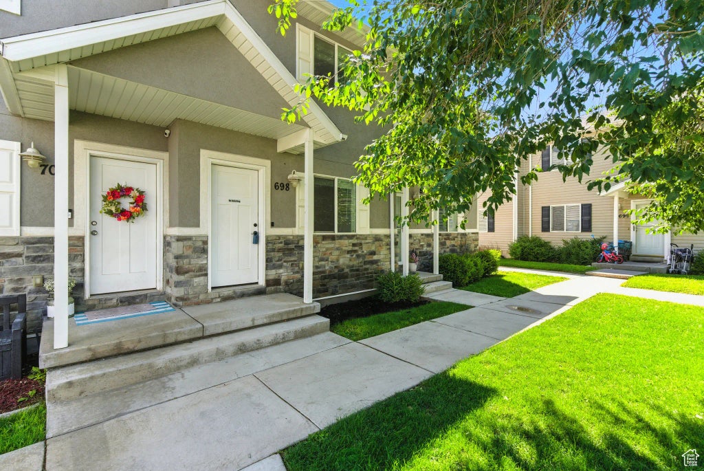 2-story condo in quiet Tooele neighborhood. No backyard neighbors! Large family room on main floor, open kitchen with granite countertops, and a half bath. Two large bedrooms, laundry, and a full bath upstairs. Soft close cabinets and toilets. Crawl space is very large and allows for great storage area. New tankless water heater! Washer and dryer are negotiable. Maintenance free living. HOA includes trash, water, snow removal, landscaping, and one covered parking spot. Open parking also available. Square footage estimate is provided as a courtesy only and buyers are encouraged to obtain an independent measurement.