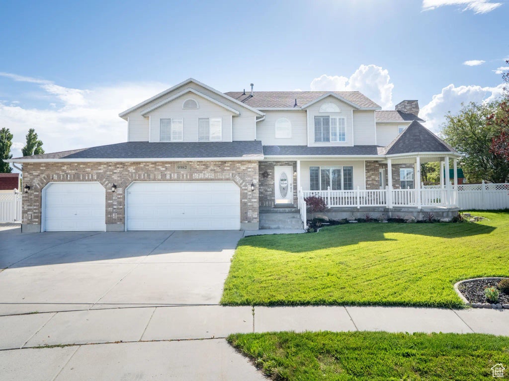 End of Cul-de-Sac with Wrap-Around Covered Porch | .41 Acre Lot | RV Parking| 4219 Sq Ft | No HOA | This charming home has been remodeled. Enjoy the wrap around porch, perfect for relaxing mornings and evenings, with a separate entrance to the formal dining room or office. Step inside to a formal living room featuring rich hickory hardwood flooring on the main level in the formal living room and dining/office room. The main floor also offers a dedicated breakfast room and a cozy family room with fireplace for gatherings. All carpet has been replaced (including luxurious silk carpet in the upstairs bedrooms), and the home has been freshly painted throughout. Three bathrooms have been beautifully remodeled, two with tile. Plantations shutters throughout the main floor and upstairs bedrooms. Walk upstairs to see the additional spacious bedrooms filled with natural light and ample closet space. Continue to walk to the primary suite, a true retreat, set apart from the other bedrooms for privacy. It features vaulted ceilings, a walk-in closet, its own sitting room with a fireplace, and a private balcony. The primary bathroom also has a jetted tub and remodeled euro-glass shower. The finished basement provides incredible versatility with two oversized family rooms-one carpeted (perfect for a theater room), the other tiled for large gatherings-as well as two large storage rooms. Outside, enjoy a large covered patio, abundant RV parking, permanent holiday lighting, and a storage shed. There is also wiring for a hot tub. The backyard is an entertainer's dream with a playground, mature trees, and even removable volleyball posts and net for fun-filled gatherings. One-of-a-kind home in an unbeatable location. Schedule your showing today! Square footage figures are provided as a courtesy estimate only and were obtained from county records. Buyer is advised to obtain an independent measurement. Although informations deemed reliable, buyer to verify all information.