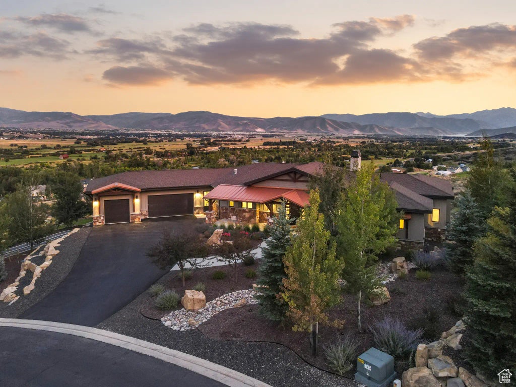 Situated above River Road in Midway, this gorgeous 6900 SF home was designed to capture the most alluring sweeping views encompassing the Provo River, Deer Creek, Mount Timpanogos to the south and Deer Valley East Village's new ski mountains to the north. Built in 2015, each room was positioned with windows framing the breathtaking vistas accompanied by the sound of the burbling water feature and quaking aspens. As the sun rises and spotlights the eastern face of Mount Timpanogos, start your day in the main level primary bedroom with a fireplace, spa bathroom and large walk-in closet. Step onto the deck shared by the adjacent office for a quick peek at emails before heading to the spacious and beautifully appointed gourmet kitchen with Thermador appliances. A discreet second office could double as a butler's pantry. The large deck overlooking Midway and beyond is perfect for year-round entertaining and planning your adventures all within your gaze. Watch the new Deer Valley lifts at East Village begin to run and access the trails within a short ten minute drive. Walk to the Provo River to fish or grab your hiking equipment for a 15 minute drive to the trails on Mount Timpanogos. With a lower level cold storage unit, an unfinished room with access to the backyard that provides additional storage or a creative renovation, and a lower level recreational vehicle garage, there are endless opportunities to be ready for year-round outdoor escapades. Family and guests will enjoy the walk-out lower level featuring a spacious family room with wet bar, three additional bedrooms, and two bathrooms. Ample parking is available in the oversized three car garage. This is more than a home, it's your private 1.09 acre mountain-view retreat with unmatched access to Utah's finest recreation and lifestyle amenities.