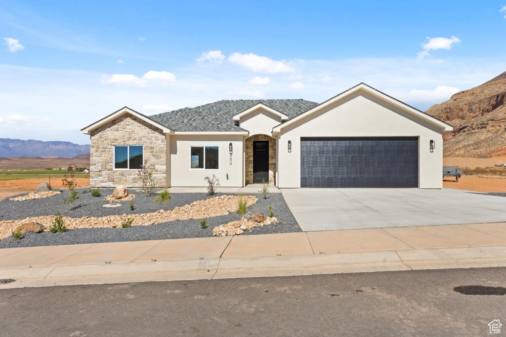 Brand new 3-bedroom, 2-bath home on a spacious .40-acre lot with no HOA, plenty of room to add an RV garage, ADU, or both. Thoughtfully designed with a split floor plan, the primary suite is tucked on one side of the home, while the additional bedrooms sit on the other. The open great room, kitchen, and dining areas feature lots of windows to showcase the panoramic views of Pine Valley Mountain, the Hurricane Cliffs, and surrounding green fields. Modern finishes include quartz countertops, tiled showers, and no carpet in the main living spaces. Enjoy sunsets and summer rainstorms from the large covered patio, or take advantage of the oversized 2-car garage for extra storage. With no homes behind you, this property combines privacy, functionality, and unbeatable views in every direction. *All information is deemed reliable but not guaranteed. Buyer to verify all.