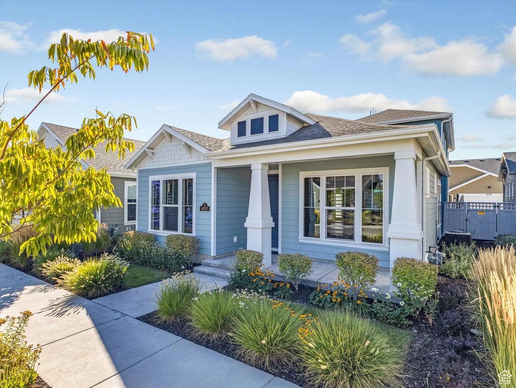 Huge price drop! Welcome to 6057 Folly Island Way, ideally located in Springhouse Village-Daybreak's premier 55+ active-adult community designed for resort-style living. Leave the yardwork behind and enjoy the private community center with pickleball courts, a golf simulator, fitness classes, a private pool, and a full calendar of activities. This nearly new rambler offers exceptional main-level living with 3 bedrooms, 3 bathrooms, and a loft, highlighted by numerous thoughtful upgrades, including plantation shutters. The beautiful kitchen features granite countertops, a center island with pendant lighting, stainless steel appliances-Whirlpool gas range with vent hood, Bosch dishwasher, and an included Frigidaire side-by-side refrigerator-plus pull-out drawers, a spacious pantry, and a custom backsplash. The inviting family room with tray ceiling opens through French doors to a covered patio and private yard. The primary suite also features a tray ceiling, a generous walk-in closet, and a barn-style door leading to a luxurious bathroom with dual sinks, a large walk/roll-in shower with bench, grab bars, dual shower heads, and a private water closet. A second bedroom on the main level includes built-in shelving and a free-standing storage closet (which stays), while the third flex room with barn door and shelving is perfect for an office, craft room, or formal dining space. Also on the main level are a second full bathroom and a laundry room with sink, built-in cabinet, and a convenient laundry chute from the loft. Washer and dryer are included. Upstairs, you'll find a versatile loft, a third bedroom with its own private bathroom, and a large walk-in closet. The garage provides built-in shelving, a walk-in storage closet, and motion-sensor lighting. Additional upgrades include a central vacuum system, tankless water heater, gas line for a BBQ, Cat-6 wiring, a security system, and main level bedrooms and bathrooms are designed to accommodate a wheelchair if needed. HOA amenities include internet, most snow removal, lawn care, and all of the wonderful amenities. All this, with a convenient location near the U of U Health Center, Smith's, and just minutes from Downtown Daybreak's shopping, dining, and amenities.