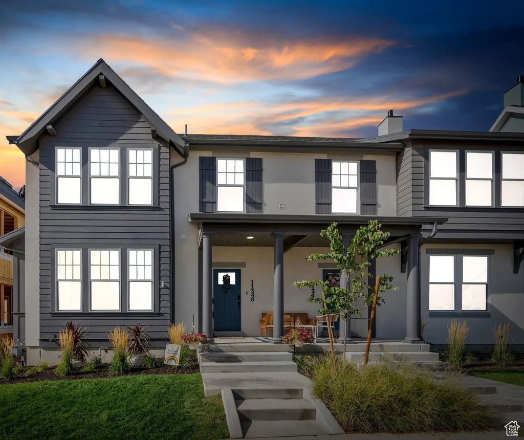 Step inside this beautifully designed duet home, where modern style meets comfort in a highly desirable South Jordan location. The main level showcases an open concept floor plan with sleek laminate flooring and large windows that fill the home with natural light. A chef-inspired kitchen takes center stage, featuring rich cabinetry, a spacious island for gathering, stylish lighting, and built-in appliances. The main-level primary suite offers a serene retreat with a private ensuite bathroom highlighted by custom tilework and a spacious walk-in closet. A convenient half bathroom, smart garage entry with storage, and welcoming covered porch complete the thoughtful main floor design. Upstairs, you'll find two additional bedrooms, a full bathroom, and a dedicated laundry room for added convenience. The fully finished lower level expands your living space with a spacious family room, a private bedroom, and another full bathroom, perfect for guests or flexible use. Enjoy outdoor living with mountain views, nearby Lookout Park, and the serene trails around Oquirrh Lake just minutes away. With a two-car garage, ample storage, and a prime location close to shopping, dining, and community amenities, this home offers both lifestyle and convenience in one beautiful package. Ask us how you can receive a 1% credit toward your closing costs when purchasing with our preferred lender!