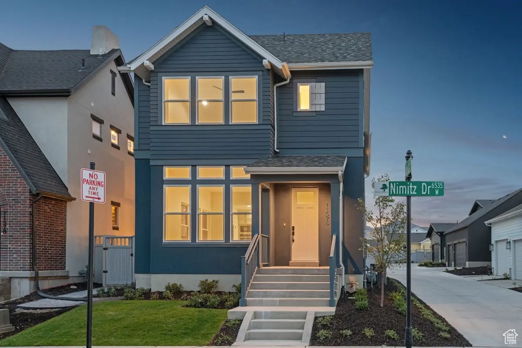 **PERMANENT RATE BUYDOWN: Qualifies for 4.875% LIMITED TIME and 5.875% permanent buydown!! (5.49% FHA) (call agent for details)** This Everly model is a stunning home in Daybreak, just around the corner from The Cove House, Watercourse, future elementary school and future village center. This home boasts an Arts and Crafts elevation, creating undeniable curb appeal. Inside, the open floor plan features a spacious family room with soaring 11' ceilings, filled with natural light from full window grids, while 10' ceilings upstairs and a vaulted ceiling in the primary suite further enhances the airy ambiance. There are amazing views of the Wasatch mountains through the primary suite windows. The chef-inspired kitchen is designed with stacked shaker cabinets in a beautiful two tone finish complete with a built-in pantry and roll-out garbage cans for added convenience, quartz countertops, a GE Gourmet appliance package with a built in gas range, a wood hood, and double ovens. The primary suite offers a luxurious retreat with its vaulted ceiling and spa-like ensuite, including dual sinks, quartz counters, and an upgraded subway cultured marble shower. Secondary bedrooms are well-sized, and the hall bath mirrors the home's refined aesthetic. Additional features include laminate flooring in Malted Oak, upgraded carpeting in all bedrooms, champagne brass hardware and designer light fixtures, and pre-wired pendant and recessed lighting for added ambiance. With a 2-year builder warranty and a 10-year structural warranty, you'll enjoy lasting quality and peace of mind for years to come! Don't miss this opportunity-schedule a tour today! ***Model Home Sales office located at: 6656 W Key Largo Way