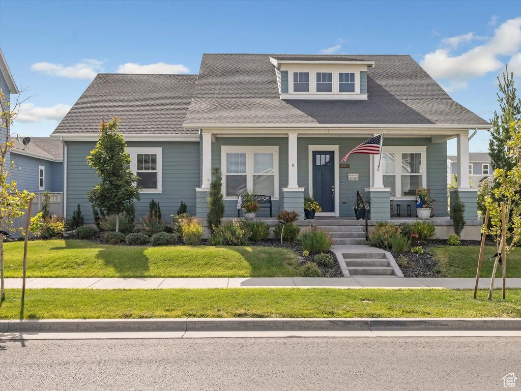 Welcome to this beautiful rambler in Creekside Village in Daybreak, located on highly desired corner lot. This home has an open, inviting porch with trim LED lights and peek-a-boo views of the Wasatch mountains. Enjoy your fully privacy fenced backyard with plenty of room to grill, relax, and entertain. The home boasts an amazing open floor plan with 10' ceilings on the main floor and 9' in the basement. This home features many upgrades including a gourmet kitchen and large, spacious island, granite countertops through out the home, and a large walk-in pantry.The main-level primary suite is a peaceful retreat with custom wall details and an en-suite bathroom with a large vanity, a deep soaker tub, euro glass shower, and a large walk-in closet. The main-level includes two bedrooms, a full bath, and a powder bath, an office space, laundry room, a great room, and dining. Downstairs the large basement is more than half finished and has a large great room with plenty of space to have games, a theater, and entertainment. There is a three quarter bath and large bedroom with a walk-in closet. The unfinished part of the basement holds storage and potential additions for the future. This home has large two car garage with few stairs, making more room for your vehicles and storage. This home is just minutes from Oquirrh Lake, amazing schools, miles of trails, and Daybreak's most loved amenities. Contact the listing agent today to schedule a private showing! Square footage figures are provided as a courtesy estimate only and were obtained from County Records. Buyer is advised to obtain an independent measurement.