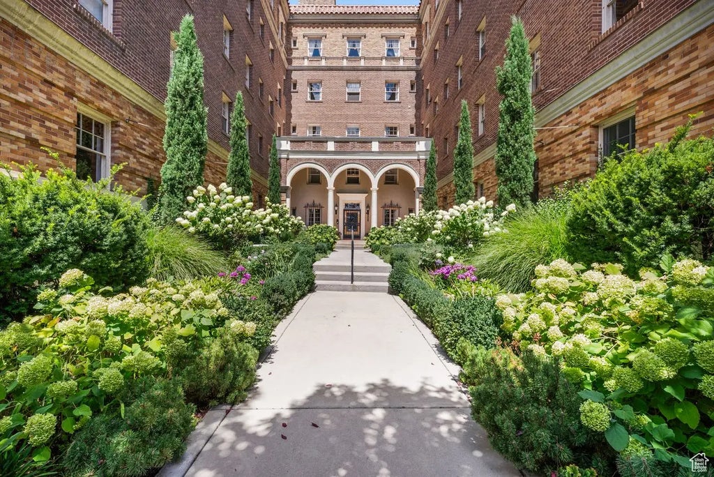 NEW PRICE! Timeless elegance meets modern comfort in this spacious 3-bedroom, 2-bath 4th floor residence at the historic Mayflower Condominium, a 1929 Beaux-Arts landmark. Light-filled rooms feature large north- and east-facing windows with stunning views of the mountains and state capitol, Great Salt Lake Antelope Island. Roof access for sunsets and fireworks. Gleaming oak hardwood floors, plantation shutters, and original architectural details enhance the home's charm. The formal dining room has been opened up to give a smooth flow throughout. The kitchen offers granite countertops, abundant counter space, Stainless appliances and a classic style. A beautiful study with built-in bookshelves and dramatic views adds versatility. Enjoy the convenience of an in-unit washer and dryer, one large secure parking space, private storage, and a secure bike room and two private garden patios to enjoy. Located across from lovely Reservoir Park. Stroll up past U of U President's circle for a terrific variety of Restaurants. This is city living at its finest. AI staged rooms