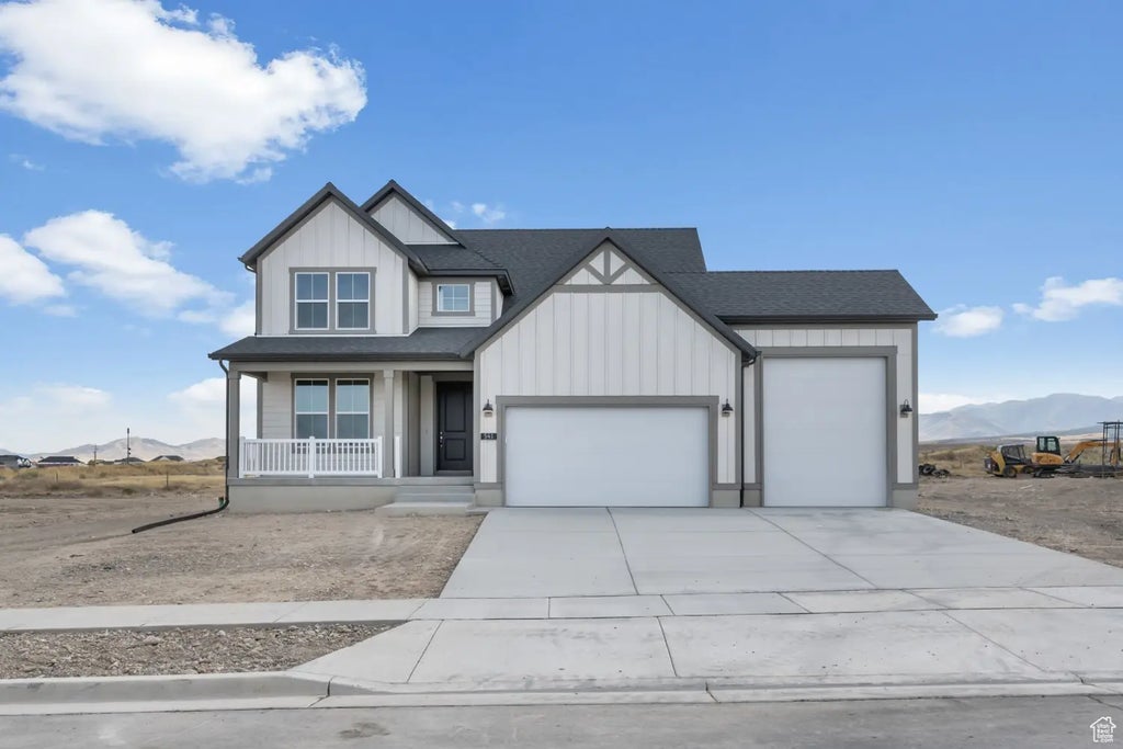 Come see this brand new 2050 Farmhouse home in a great new Grantsville community! Featuring a stylish kitchen with white laminate cabinets, sleek quartz countertops and premium stainless steel gas appliances. The elegant flooring combines laminate hardwood, vinyl tile, and carpet for a versatile and cozy living space. The expanded 3-car garage offers convenience and ample storage along with a box window in the kitchen nook. The owner's bathroom boasts cultured marble shower surrounds and chrome & satin nickel hardware for a spa-like experience. A 40-gallon water heater, 2 tone paint and energy-efficient options ensure comfort and saving. Come see this home that is a perfect blend of style and functionality!