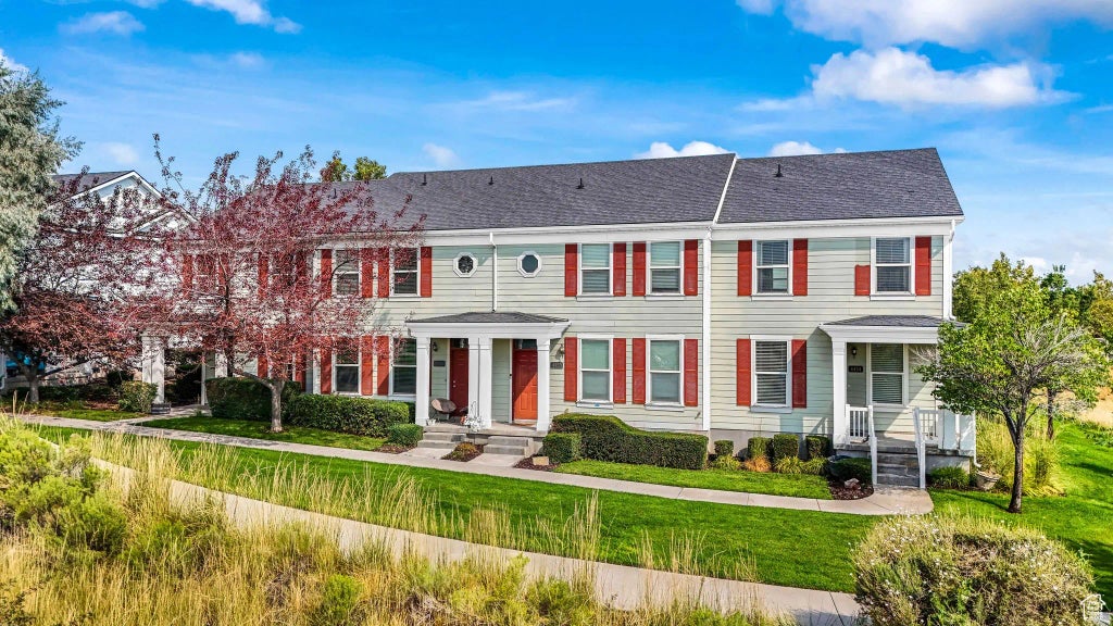 Beautiful and Private end-unit townhome in Daybreak! This 3-bed, 2.5-bath home offers a bright and open layout. In the kitchen you'll find granite countertops, sleek black appliances, an expansive breakfast bar with chic pendant lighting, knotty alder cabinets, and a glass top stove. The spacious primary suite features a walk-in closet and full bath. Enjoy a spacious 2-car attached garage, private side patio, and tons of side yard space being the end unit, not to mention stunning mountain views. This home steps from community pools, trails, lake, and SoDa Row shops. Convenient access to TRAX and major roads for an easy commute. This is one home you don't want to miss! Buyer to verify all.