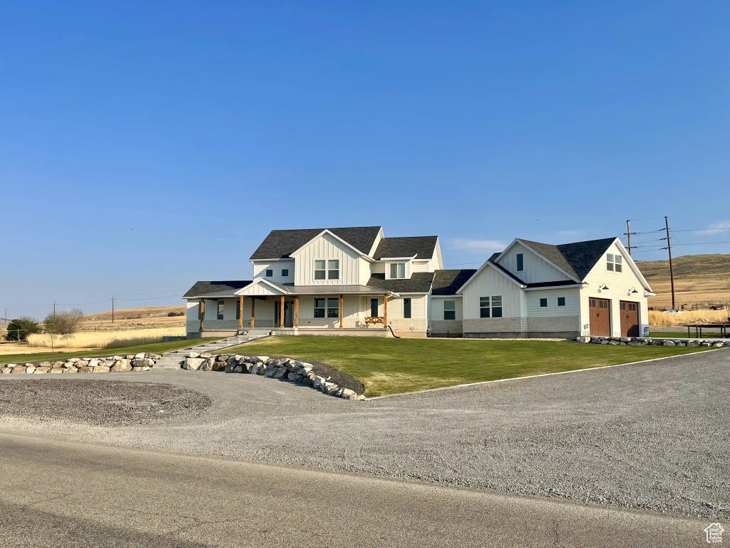 WELCOME TO YOUR MODERN FARMHOUSE, with stunning valley views! Located in Tremonton, UT. Freeway access is less than 5 minutes to both I-15 & I-84, only a 30 minute drive to Logan or Ogden, which makes country living an easy commute away! Fully finished home! Open concept living on the main floor with an 18 ft ceiling, an extra large fireplace fully rocked to the ceiling, and a 6 ft windmill fan. Vaulted sitting room with windows on all 3 sides to enjoy the views and natural lighting. Shiplap coverings and wood accents throughout the entire home. Relax and enjoy the vaulted master suite with a fireplace! Master bath boasts a large walk-in, double shower, a free standing soaker tub, and a HUGE walk-in closet! The upstairs features bedrooms with beautiful views! In the basement you'll walk into a large family room with a theatre, wet bar, and more wood and brick accents! Walk-in closets in the basement bedrooms, a walk out basement access, and plenty of storage in the vast storage room. A 500 sq ft mother in law apartment or VRBO rental is located above the garage, with its own separate exterior entrance! Situated on 1.43 acres with a 30x50 shop, an abundance of storage on a 200 sq ft mezzanine inside the shop as well as a 200 sq ft finished gym! Come and see all the custom upgrades this home has to offer! Buyer to verify all information.