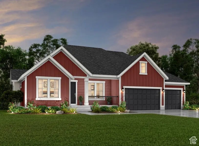Come see this beautiful brand new Creighton Farmhouse, an exquisitely designed home offering timeless charm paired with modern convenience. The gourmet kitchen showcases maple cabinets with LED lighting, quartz countertops, full-height tile backsplash, and stainless steel gas appliances with double ovens-perfect for entertaining or family gatherings. A box window and atrium door in the kitchen nook invite natural light while creating a warm and inviting dining space. The open floor plan features a spacious great room highlighted by a gas log fireplace and french doors leading to the living room. Hardwood laminate flooring with tile and carpet in select spaces add style and comfort throughout. This home also includes an upstairs loft, a finished basement with 9-foot foundation walls, a 3-car garage with exit door, and expanded utility with gas lines for BBQ and dryer hookups. Additional highlights include can lighting, Christmas light outlets, a passive radon system, and energy-efficient design elements. The owner's bathroom and secondary baths are enhanced with elegant tile surrounds, while black matte hardware, textured walls, and two-tone paint add sophistication. Loft base and casing bring a polished finishing touch to this exceptional home.