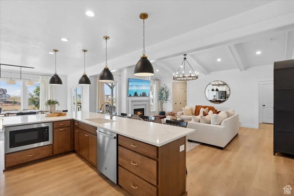 3 Car Garage! LARGE Finished Basement, You DO NOT WANT TO MISS THIS! Welcome to Luxury Family Living in the Heart of Daybreak's Scenic Watercourse! Nestled in one of Utah's most sought-after neighborhoods, now is your chance to own a gorgeous home here! This home offers the perfect blend of luxury, comfort, and outdoor adventure. Enjoy Peaceful walks through the beautifully landscaped paths, kayaking on the waterway (With FREE residential rentals!), and a Short Walk to SWIG Soda Shop! Plus, you're only Minutes from the brand-new Bees Baseball Stadium, Parks, and Community Events. Inside, you'll find timeless design and thoughtful upgrades! The open-concept Kitchen features a Double Oven, butler's Pantry, and space for a Large Dining Table, Perfect for gathering with Family and Friends. The living area boasts gorgeous upgraded lighting, a Cozy Fireplace, and Beautiful, inviting Finishes throughout, and Large Windows that flood the Home with Natural Light. The Primary Suite is a true Retreat complete with His -and-Hers Closets, Double Sinks, and a Soaking Tub. Downstairs, The Finished Basement offers SO much space! With a Wet Bar and enough room for a Home Theater, Playroom, or Second Family Room...The possibilities are endless. Let's not forget about the Large Garage and yard space in the back! If you've been dreaming of a home that blends Luxury, Lifestyle, and LOCATION...THIS is it!