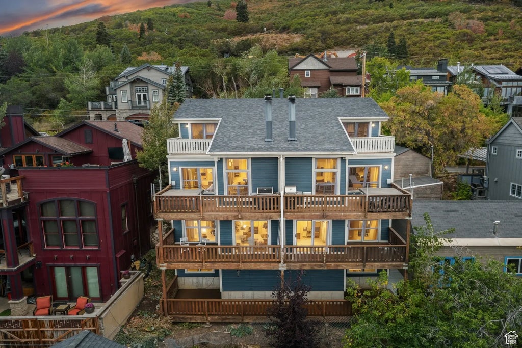 Positioned just steps from Park City Mountain's ski runs with sweeping views over Old Town, this expansive duplex functions as two connected townhomes offering unparalleled mountain living. The property boasts an impressive array of amenities, including four master suites, two double guest bedrooms, two bunk rooms, and seven full bathrooms, as well as two complete kitchens for maximum convenience. Outdoor enthusiasts will appreciate the property's prime location, just one minute's level walk to PC Mountain's Quit 'N Time ski run, while two private hot tubs provide the perfect spot to unwind after a day on the slopes. The duplex includes two private garages plus three additional parking spaces and a heated driveway for year-round accessibility. Each bedroom opens to its own private deck, creating multiple vantage points to take in the stunning views stretching from Main Street to Deer Valley. Entertainment options abound with a shared game room featuring a pool table and personal sauna, ideal for hosting guests or relaxing with family. The location puts you just three blocks from Main Street, providing easy walking access to Park City's renowned restaurants, vibrant nightlife, boutique shopping, art galleries, coffee shops, and seasonal festivals throughout the year. This exceptional property represents a rare opportunity to acquire one of Park City's premier income-generating residential investments, combining luxury amenities with an unbeatable location for both personal enjoyment and rental potential.