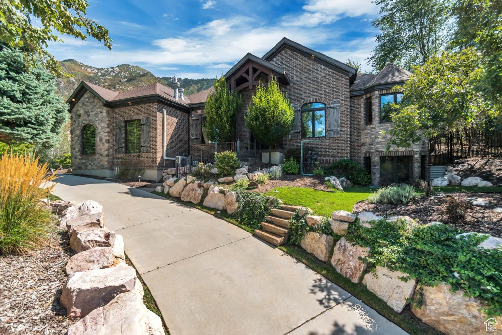 Welcome to luxury and comfort in the prestigious Pepperwood community, where stunning mountain scenery meets elegant living. This exquisite 4-bedroom, 6-bathroom home welcomes you with a circular heated driveway framed by manicured landscaping. At night, newly installed trim lighting transforms the exterior, creating a beautiful ambiance for any occasion. Step inside through grand double doors to find elegant wood flooring, a dramatic double-sided stone fireplace, and a sweeping circular staircase. To the right, a private office offers inspiring valley views, while to the left, a formal living room captures more breathtaking vistas. Beyond the fireplace, the family room and gourmet kitchen open to majestic mountain views, enhanced by the soothing sound of a cascading backyard waterfall. The updated kitchen features quartz countertops, high-end appliances, and an expansive butler's pantry. The main-level primary suite is a serene retreat with its own fireplace, private patio, and a spa-like en suite complete with a jetted tub, steam shower, and dual vanities. Downstairs is designed for both entertaining and relaxation, offering a state-of-the-art theater room, spacious family room, and a large kitchenette equipped with two wine refrigerators and a new dishwasher. Guests will enjoy a private suite with en suite bath, while additional bedrooms and bathrooms provide plenty of space for family or visitors. A versatile bonus room with washer/dryer hookups can serve as a fitness studio, craft room, or second office. Outside, the backyard is a true sanctuary-majestic mountain views, a spectacular waterfall feature, and space to gather or unwind. Welcome home to Pepperwood-where elegance, comfort, and nature unite. Square footage figures are provided as a courtesy estimate only. Buyer is advised to obtain an independent measurement.